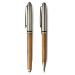 Zestaw piśmienniczy, długopis i pióro kulkowe z nadrukiem Twojego logo, materiał: metal, bambus, kolor: drewno