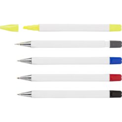 Zestaw piśmienniczy, ołówek, zakreślacz i długopisy z wkładem w kolorze nakrętki z nadrukiem Twojego logo, materiał: metal, plastik, kolor: biały