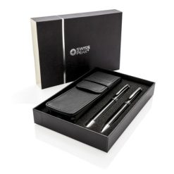 Zestaw piśmienny Swiss Peak z nadrukiem Twojego logo, materiał: metal, kolor: czarny