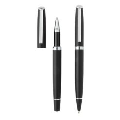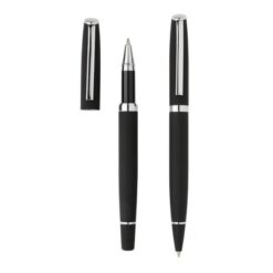 Zestaw piśmienny z nadrukiem Twojego logo, materiał: metal, aluminium, kolor: czarny