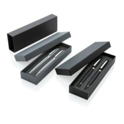 Ekskluzywny zestaw piśmienny, pióro kulkowe oraz długopis, matowe wykończenie, niemiecki wkład Dokumental® w kolorze niebieskim w komplecie, długość pisania długopisu ok. 1200 m, pióro kulkowe ok 400 m, w dopasowanym kolorystycznie pudełku ozdobnym, ślad węglowy produktu: 0,41 kg CO2