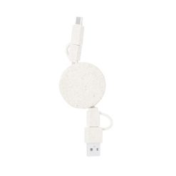 Zestaw podróżny do ładowania ze słomy pszenicznej, zwijany kabel do ładowania i synchronizacji, ładowarka ścienna, bawełniany pokrowiec z nadrukiem Twojego logo, materiał: plastik, bawełna, słoma pszeniczna, kolor: neutralny