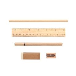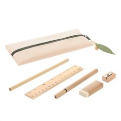 Zestaw szkolny, piórnik, ołówek, długopis, linijka, gumka i temperówka | Landon z nadrukiem Twojego logo, materiał: drewno, papier, bawełna, kolor: neutralny