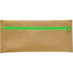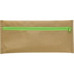 Zestaw szkolny w piórniku na zamek błyskawiczny, linijka, długopis z zielonymi elementami, ołówek, temperówka, gumka i notes