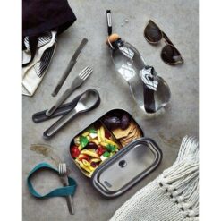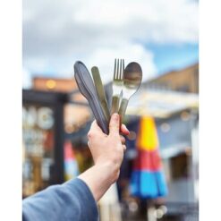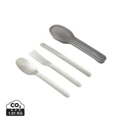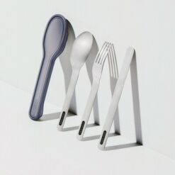 Zestaw sztućców, nóż, widelec oraz łyżka wykonane ze stali nierdzewnej, z etui wykonanym z PP, nadaje się do mycia w zmywarce