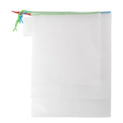 Zestaw 3 woreczków RPET na owoce i warzywa w różnych rozmiarach: 26 x 28 cm, 30 x 33 cm, 30 x 40 cm, przy każdym woreczku specjalna metka pod znakowanie