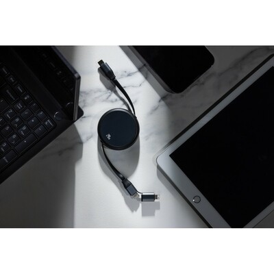 Zwijany kabel do ładowania i synchronizacji 2 w 1, końcówki: 2 x USB-C, iOS, moc ładowania do 240W, obsługuje CarPlay i Android Auto, wykonany z materiałów z recyklingu, całkowita zawartość materiałów z recyklingu obliczona na podstawie masy całkowitej produktu: 69%